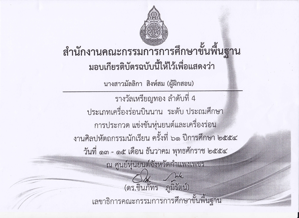 ชื่อผลงาน : รางวัลผู้ฝึกสอนรางวัลเหรียญทอง ลำดับที่ 4
