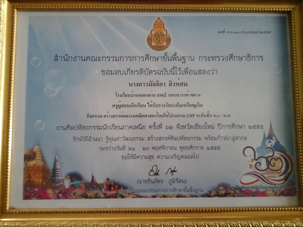 ชื่อผลงาน : รางวัลผู้ฝึกสอนนักเรียนได้รับรางวัลเหรียญเงิน
