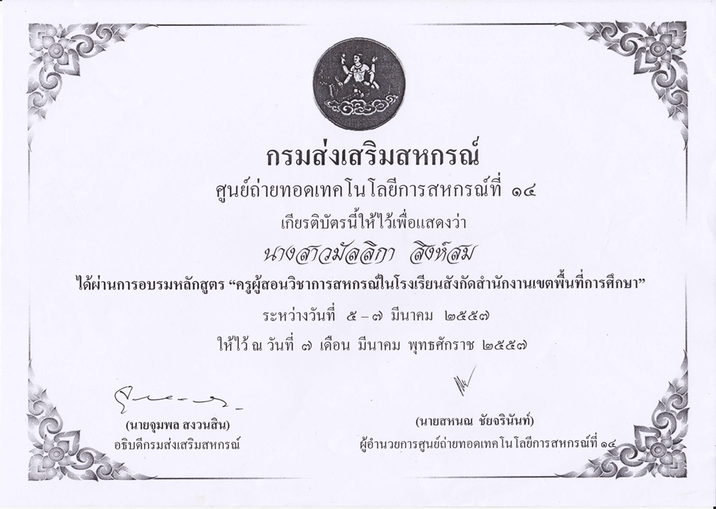 ครูผู้สอนวิชาการสหกรณ์ในโรงเรียนสังกัดสำนักงานเขตพื้นที่การศึกษา วันที่ 5-7 มีนาคม 2557 |