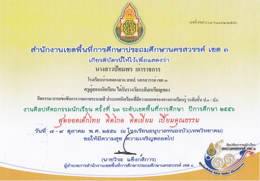 ชื่อผลงาน : ครูผู้สอนนักเรียนได้รับรางวัลระดับเหรียญทอง